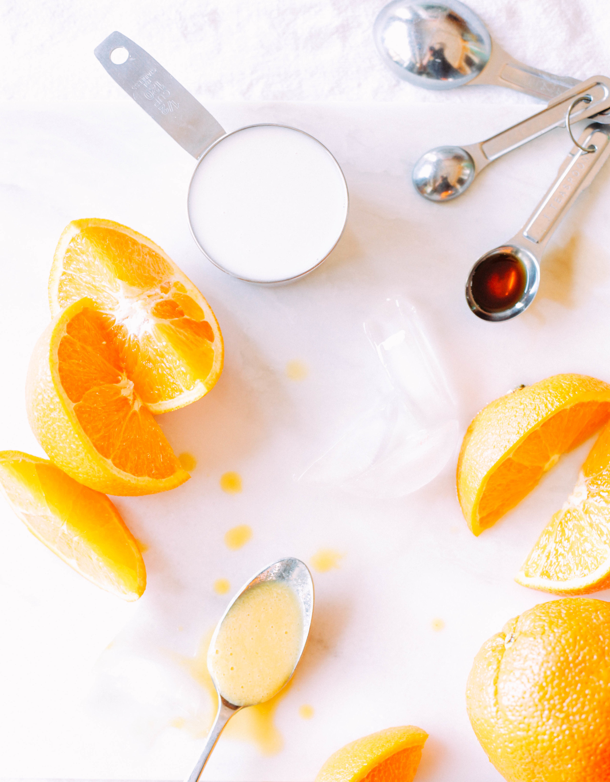 Add all ingredients to a blender and blend until combined, less than 30 seconds. The orange concentrate will still be quite strong, so if you want a less intense orange flavor, add extra almond milk or ice cubes. If you do want a bit of extra sweetness, add a teaspoon of agave nectar.